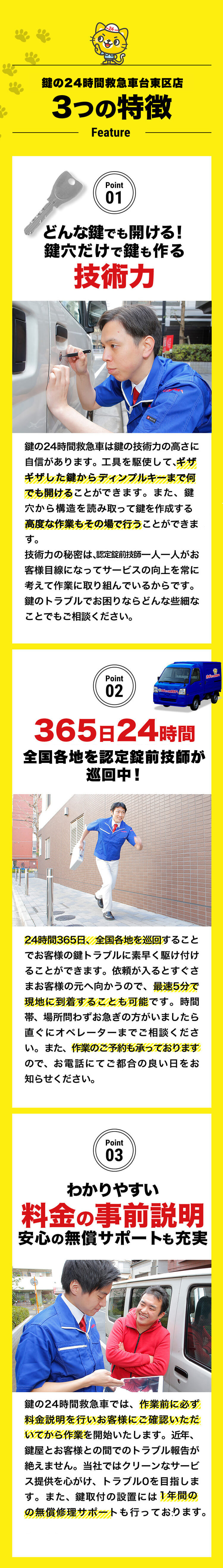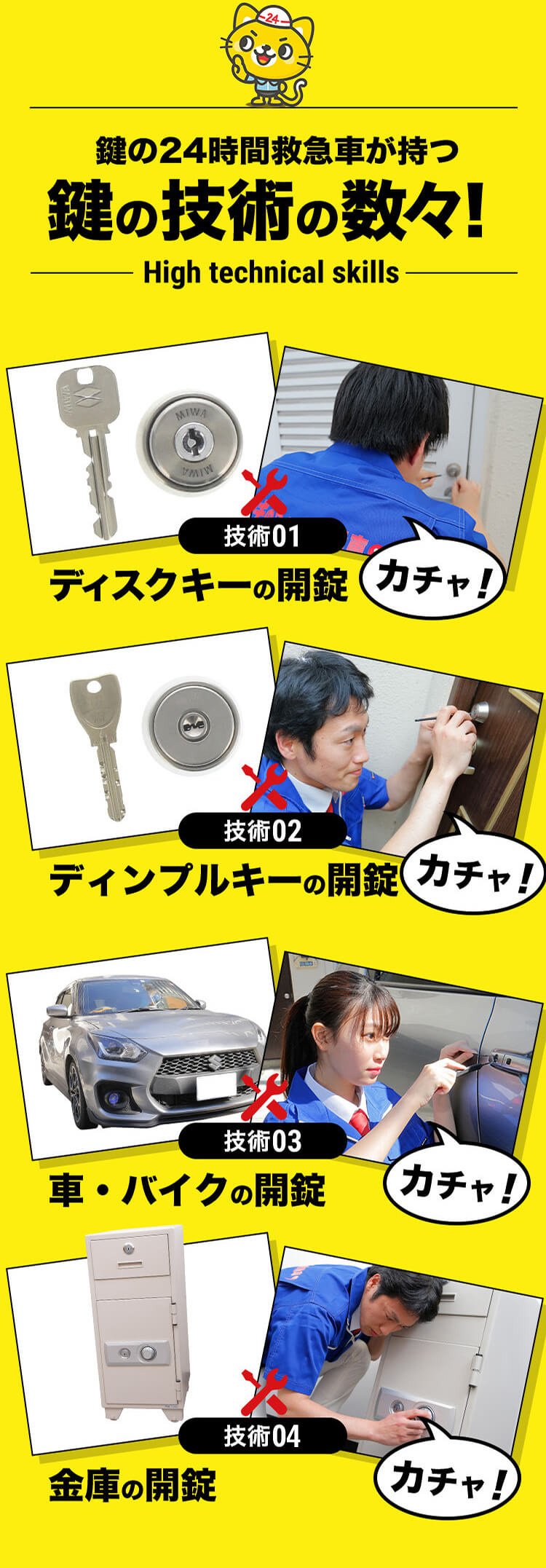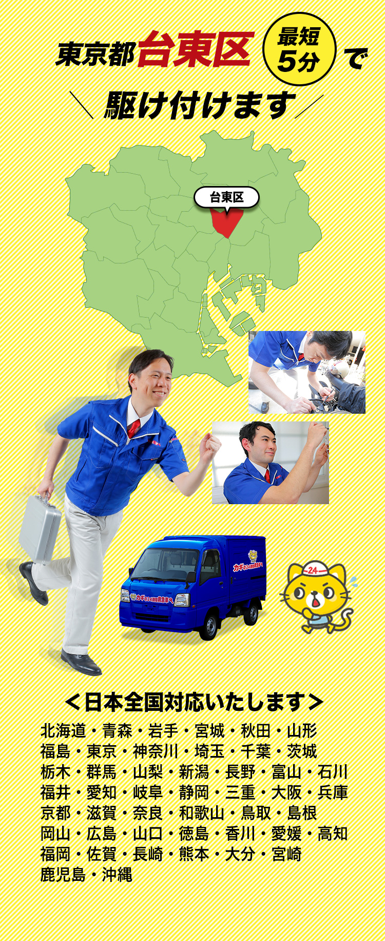 台東区の「カギの出張24時間」は、上野、浅草エリアで迅速に鍵のトラブルに対応します。地元の観光地に匹敵する親切で丁寧なサービスを心がけ、安心価格で透明な対応をお約束します。台東区で信頼される鍵屋です。